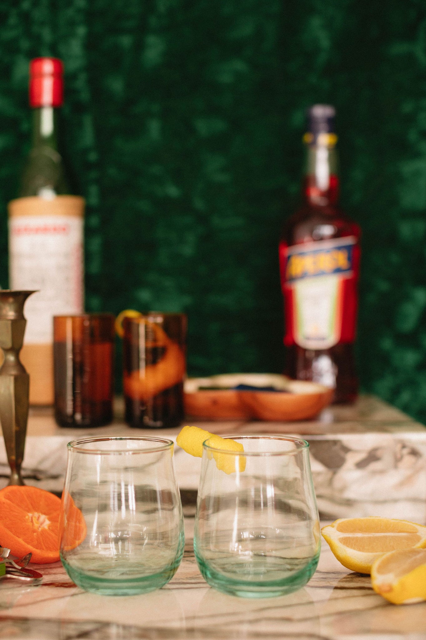 One lives on the outskirts of Bogota, Colombia. These glasses are hand blown from recycled glass by local artisans in a small organization that’s been creating jobs and helping Colombia recycle.