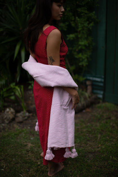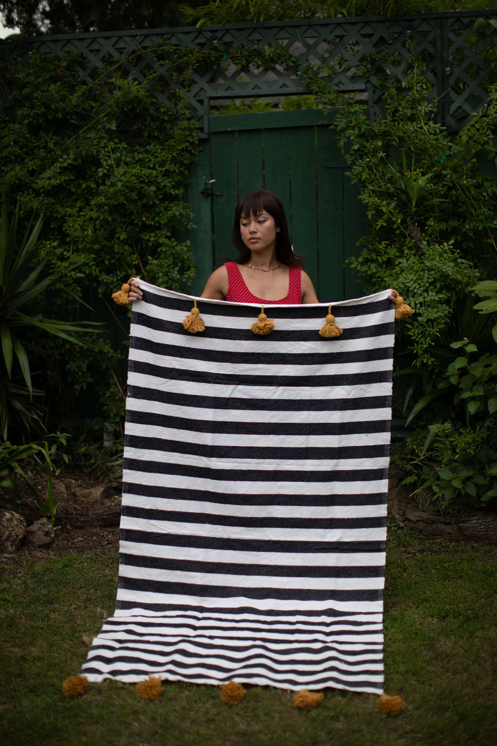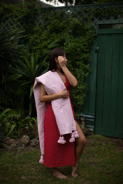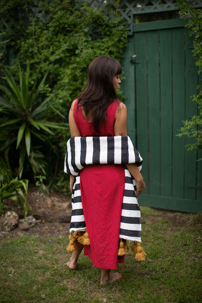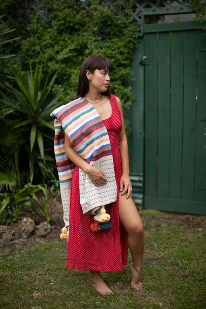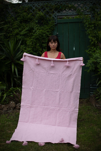 Due to the handmade nature of our products, each is a work of art; a one-of-a-kind piece with slight variations in color, texture and shape. Hand loomed in the Moroccan port city of Essaouira by our artisan, Mohamed, our Pom Pom blankets are made on traditional wooden looms from 100% cotton.