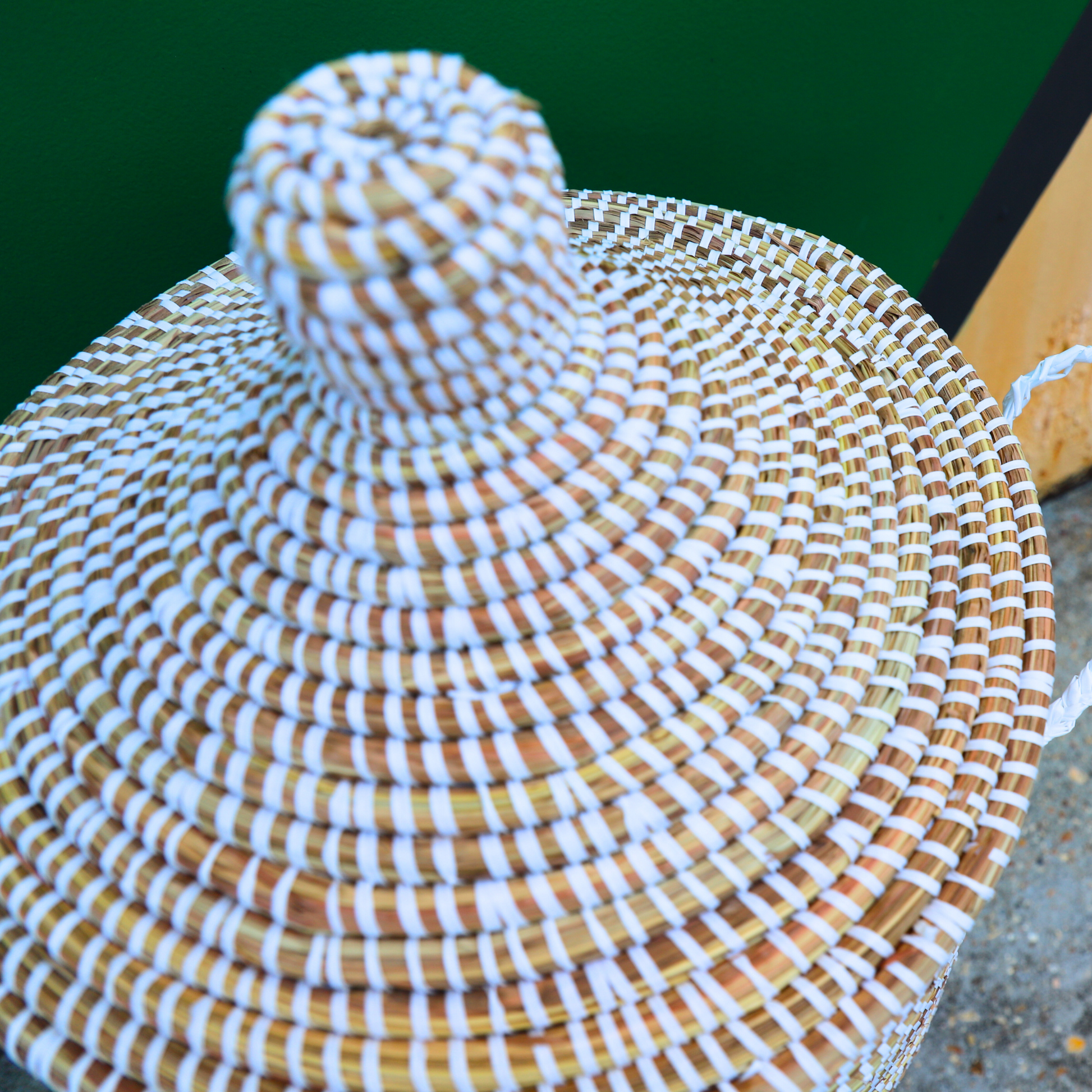 This basket can be used for laundry; storage for towels, toys, or anything you can think of! This basket is handmade in Senegal by local artisans and will never go out of style. These baskets are woven with straw and recycled plastic.
