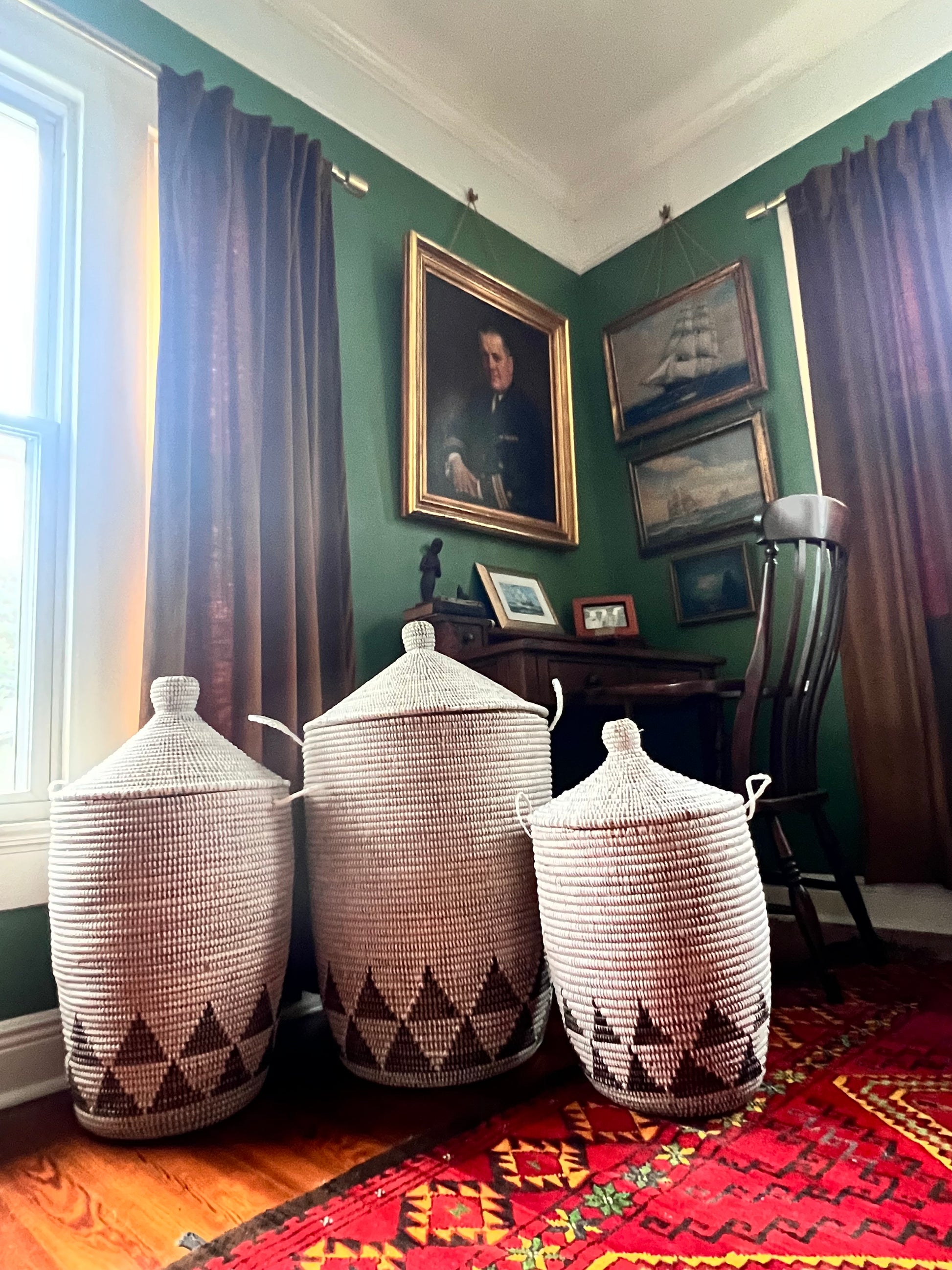 This set of 3 baskets can be used for laundry; storage for towels, toys, or anything you can think of! This basket is handmade in Senegal by local artisans and will never go out of style. These baskets are woven with straw and recycled plastic.